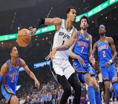 雷霆:亞歷山大34分5板5助4帽、杰倫·威廉姆斯20分3助2斷、卡魯索13分2板4助、杰林·威廉姆斯11分10板5助2帽、米切爾11分6板4助、霍姆格倫8分10板3帽。馬刺:卡斯?fàn)?0分7板8助、文班亞馬17分7板1助、??怂?4分5板5助、尚帕尼13分6板1助、哈珀12分3板3助、凱爾登9分3板。