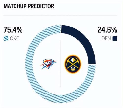 這是本賽季兩隊(duì)的首次交鋒,但兩隊(duì)在上賽季季后賽次輪曾有過激烈交鋒,當(dāng)時(shí)雷霆通過七場(chǎng)苦戰(zhàn),以4-3淘汰掘金,因此,這場(chǎng)比賽的勝負(fù)也將可能成為本賽季季后賽西部決賽的預(yù)演。賽前,美媒ESPN對(duì)本場(chǎng)比賽進(jìn)行了勝率預(yù)測(cè),雷霆隊(duì)勝率意外高達(dá)75.4% ,掘金隊(duì)勝率則僅有24.6% ,處于劣勢(shì)一方。