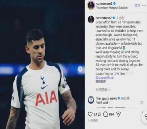 在解釋了周末為何被換下場后,羅梅羅將矛頭隱晦地對準了ENIC集團在轉(zhuǎn)會市場上缺乏緊迫感的行為,熱刺在陣容深度方面仍然顯得單薄。他在Instagram上寫道:“昨天我所有的隊友都付出了巨大的努力,他們太不可思議了?!?/p>