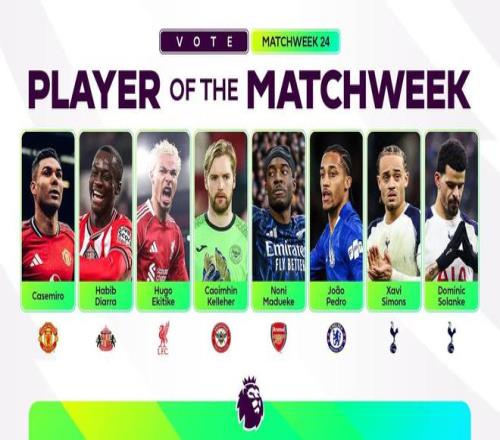 北京時間2月3日,英超官方公布了第24輪比賽的最佳球員候選名單,其中卡塞米羅、?;倏?、馬杜埃凱、若昂-佩德羅、哈維-西蒙斯、索蘭克等球員在列。