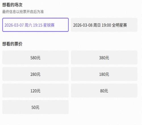 據(jù)票務(wù)網(wǎng)站顯示,全明星首日的票價(jià)最低50元,最高580元。次日的票價(jià)最低180元,最高1580元。