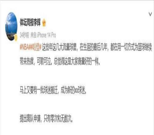 "這操作跟當年威少在湖人似的,說走就走不留情面。"