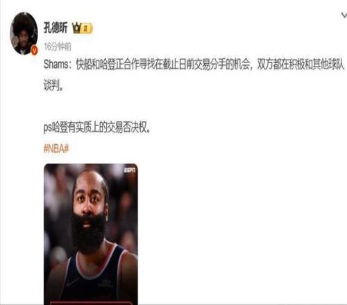 申請離隊!哈登正式結束快船生涯!國內名嘴發(fā)聲,騎士商討1換1!