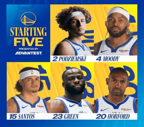 首發(fā)陣容方面,76人隊這邊,保羅·喬治被禁賽25場,恩比德因背靠背管理缺席,教練排出的首發(fā)五人組為:泰雷斯-馬克西、VJ-埃奇庫姆、凱利-烏布雷、多米尼克-巴洛和安德烈-德拉蒙德;勇士隊這邊,巴特勒賽季報銷、庫明加缺陣,再加上庫里的傷病總計6人缺戰(zhàn),科爾繼續(xù)變陣,啟用本賽季的第22套首發(fā)陣容,則為:吉-桑托斯、摩西-穆迪、布蘭丁-波杰姆斯基 、德雷蒙德-格林、霍福德。