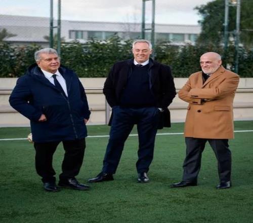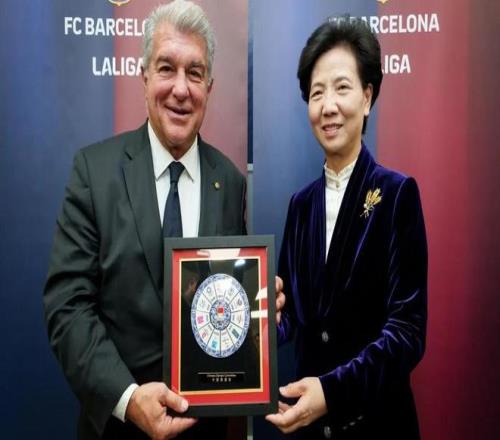 巴塞羅那足球俱樂部主席拉波爾塔與西甲聯(lián)盟主席特巴斯,共同歡迎由中國國務(wù)委員諶貽琴率領(lǐng)的中國代表團訪問巴薩拉瑪西亞青訓(xùn)營。