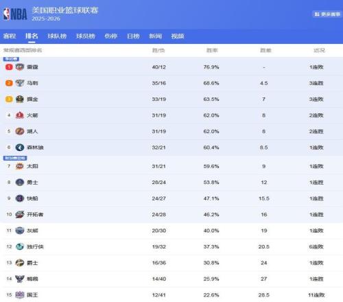 隨著NBA25-26賽季常規(guī)賽賽程過半,NBA得爭奪也是變得更加激烈,各支球隊都開始為了更好地排名,開始了沖刺,這使得排名大亂,尤其是西部,競爭尤為激烈,各球隊的排名隨時都在發(fā)生變化,更可謂是亂!亂!亂!馬刺沖第1,4隊哄搶第3,快船翻身難了!