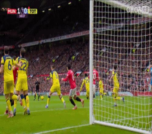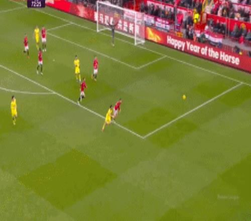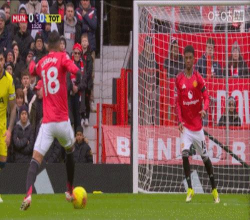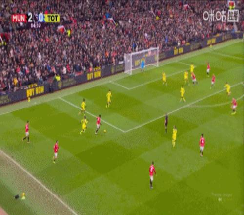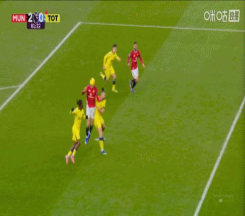 第80分鐘,達(dá)洛特傳中,B費門前包抄破門,曼聯(lián)2-0領(lǐng)先熱刺