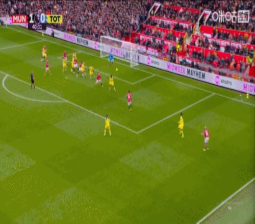 第37分鐘,曼聯(lián)角球配合,姆伯莫推桿破門,曼聯(lián)1-0領(lǐng)先熱刺!