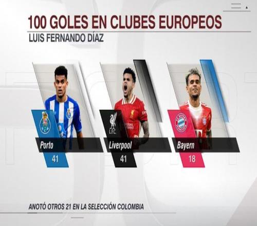 里程碑,路易斯迪亞斯在歐洲足壇已打入100球