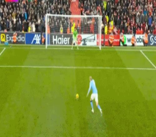 第91分鐘,阿利森撞倒努內(nèi)斯,主裁判判罰點球,哈蘭德主罰點球一蹴而就,2比1!進球之后,哈蘭德脫掉球衣瘋狂慶祝。