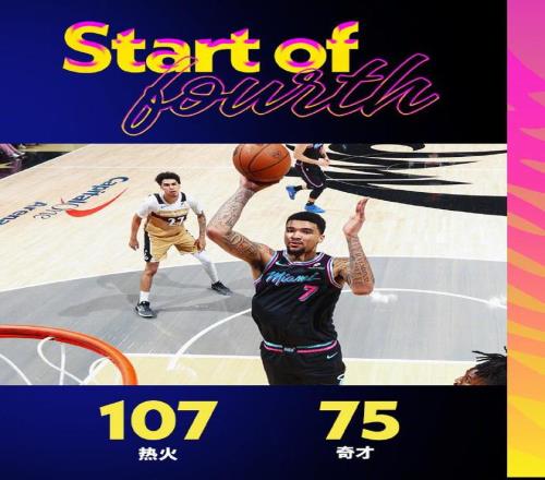 中場休息回來,熱火連續(xù)三節(jié)單節(jié)得分30+,且限制奇才連續(xù)兩節(jié)單節(jié)不超過25分。熱火依然是進攻火力碾壓,鮑威爾三節(jié)5記三分21分與阿德巴約22+7,引領熱火已經(jīng)多達5人得分上雙,熱火三分36中18高達5成準星。奇才被限制三分29中9,全隊3人得分上雙,但最高分僅13分,熱火單節(jié)33-23凈勝10分,三節(jié)結(jié)束熱火已經(jīng)取得107-75領先奇才。
