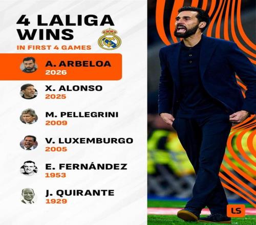 在帶隊(duì)客場擊敗瓦倫西亞后,阿韋洛亞成為皇馬隊(duì)史第六位執(zhí)教球隊(duì)前四場西甲比賽全部取得勝利的主帥,而他的前任哈維-阿隆索也做到了這一點(diǎn)。