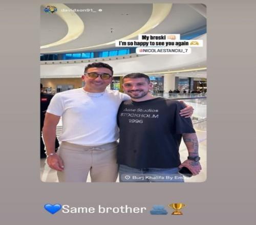 正在迪拜冬訓(xùn)的大連英博外援斯坦丘曬與原武漢三鎮(zhèn)隊友戴維森、阿齊茲合照。