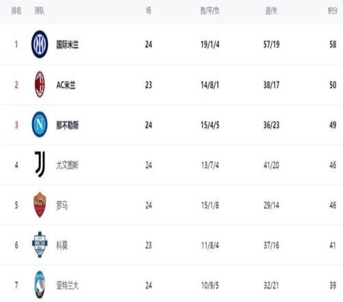 榜首位置依舊被國(guó)際米蘭牢牢占據(jù),他們目前以58分的積分領(lǐng)跑積分榜,戰(zhàn)績(jī)?yōu)?9勝1平4負(fù),優(yōu)勢(shì)十分明顯。或許有球迷會(huì)疑惑,國(guó)際米蘭輸球的場(chǎng)次并不算少,為什么還能穩(wěn)居榜首?核心原因就在于他們的平局極少,贏球的場(chǎng)次是目前聯(lián)賽中最多的,憑借著超高的贏球效率,成功穩(wěn)住了榜首位置,牢牢掌握著爭(zhēng)冠主動(dòng)權(quán)。