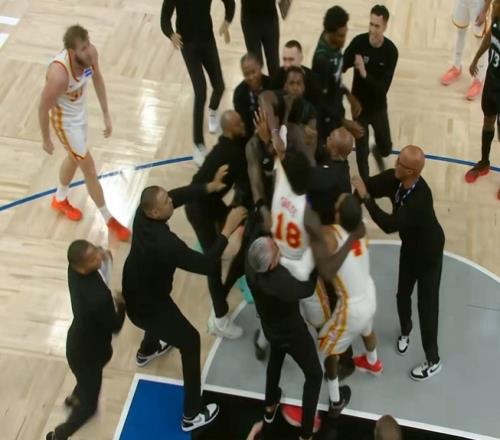 森林狼老鷹比賽第三節(jié),蓋耶卡位中推拉里德引里德不滿,兩人貼面輸出,隨后發(fā)展成拉拽沖突!雙方多名球員和助教前來拉架。