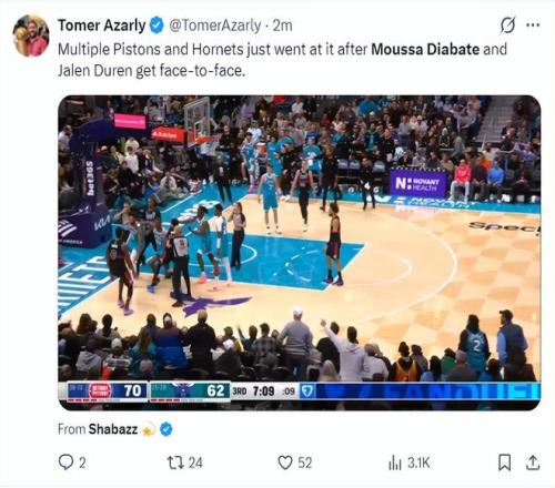 北京時(shí)間2月10日,活塞與黃蜂的比賽中爆發(fā)巨大沖突,NBA再一次上演了全武行,在裁判將兩隊(duì)的球員分開后,裁判看了回放直接驅(qū)逐了四人:迪亞巴特、布里奇斯、杜倫、斯圖爾特,最終兩隊(duì)都沒討到便宜。