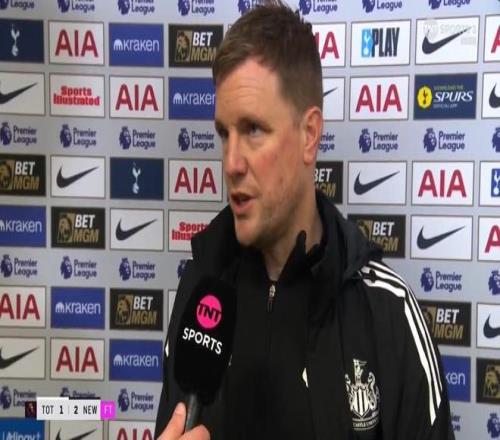 率隊(duì)在英超第26輪客場(chǎng)2-1擊敗托特納姆熱刺之后,紐卡斯?fàn)柭?lián)主教練埃迪-豪接受了來(lái)自TNT體育的采訪。