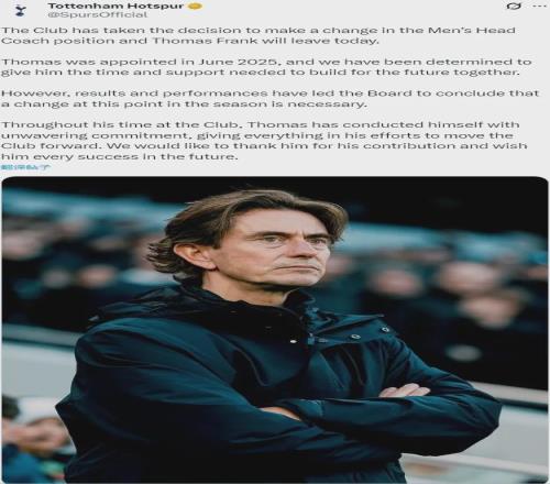 官方:熱刺宣布解雇了托馬斯-弗蘭克。