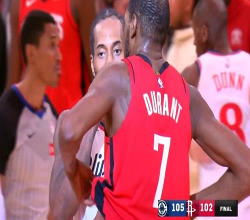 當(dāng)時(shí),火箭還剩下最后兩秒,杜蘭特被完全防死,他雖然擺脫了萊昂納德的防守,但是小瓊斯補(bǔ)防到位沒(méi)讓他接到球。隨后,申京錯(cuò)失絕平三分。