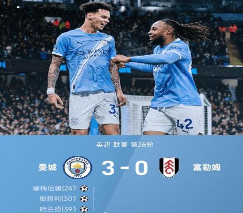 曼城30富勒姆緊追榜首,塞梅尼奧傳射成功臣,連勝戰(zhàn)績(jī)可延續(xù)