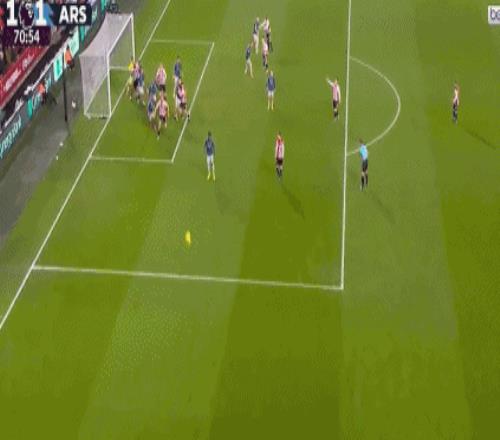 第61分鐘,阿森納界外球攻勢(shì),卡約德解圍被斷,因卡皮耶左路下底傳中,馬杜埃凱搶點(diǎn)頭球吊射,凱萊赫鞭長莫及,阿森納打破僵局,1-0!
