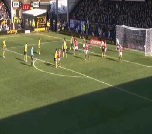 第33分鐘,伯頓球員禁區(qū)內(nèi)射門,球被阿雷奧拉撲住