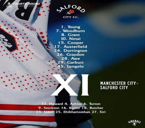 北京時(shí)間2月14日23:00,足總杯第四輪繼續(xù)進(jìn)行,曼城坐鎮(zhèn)阿提哈德球場(chǎng)迎戰(zhàn)英乙球隊(duì)索爾福德城,本場(chǎng)主裁判為馬特-多諾霍,賽前雙方首發(fā)出爐。