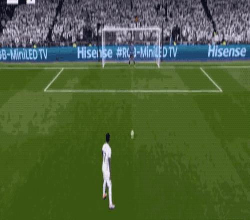 兩分鐘后,維尼修斯如法炮制,在禁區(qū)內(nèi)被放倒,裁判同樣判罰點(diǎn)球。維尼修斯親自操刀,一蹴而就。