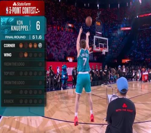 預(yù)賽第一場,康神克努佩爾第一個出場就投出27分基本鎖定了一個決賽的名額。康神三分大賽的表現(xiàn)依然符合他常規(guī)賽的表現(xiàn),就兩個字,穩(wěn)定。出手就有,完全不怯場。