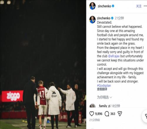 遭遇膝蓋重傷!津琴科社媒:極度崩潰,我要向阿賈克斯表達(dá)歉意