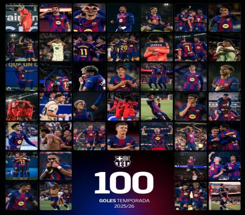 這也是巴薩本賽季打進(jìn)的第100粒進(jìn)球!