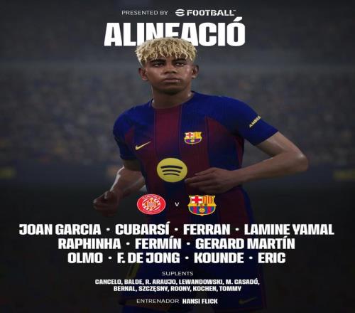 巴薩客戰(zhàn)赫羅納:亞馬爾、費蘭首發(fā),拉菲尼亞、馬丁出戰(zhàn)