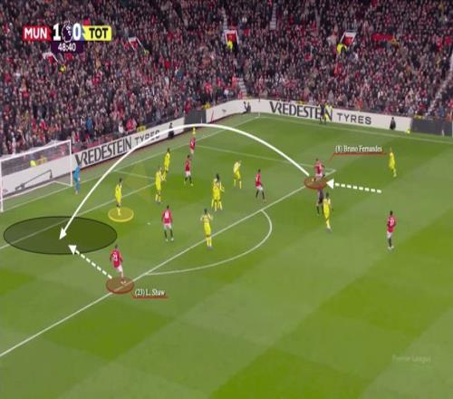 在2-0擊敗熱刺的比賽里,B費的跑位迷惑了熱刺左后衛(wèi)德斯蒂尼·烏多吉,隨后傳給卡塞米羅,「胖虎」與姆貝莫配合未果,B費又率先做出反應,第一時間傳中給左側(cè)的盧克·肖,后者助攻阿馬德·迪亞洛得分,可惜因為越位被判無效。