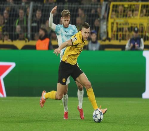 同組強(qiáng)敵云集,博德閃耀似乎是送分童子,首戰(zhàn)客場(chǎng)2-2戰(zhàn)平布拉格斯拉維亞,次輪主場(chǎng)2-2平熱刺,接下來(lái)3連敗到了出局的邊緣,最后3輪連戰(zhàn)多特蒙德、馬競(jìng)、曼城,他們竟然2勝1平不敗拿到了7分。