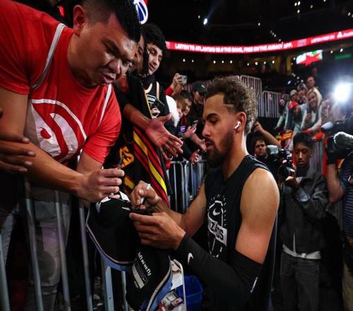同時(shí)特雷楊賽后仍不忘為現(xiàn)場(chǎng)觀戰(zhàn)的老鷹隊(duì)球迷簽名、合照留念,并且通過(guò)視頻方式為中國(guó)球迷送上新年祝福。